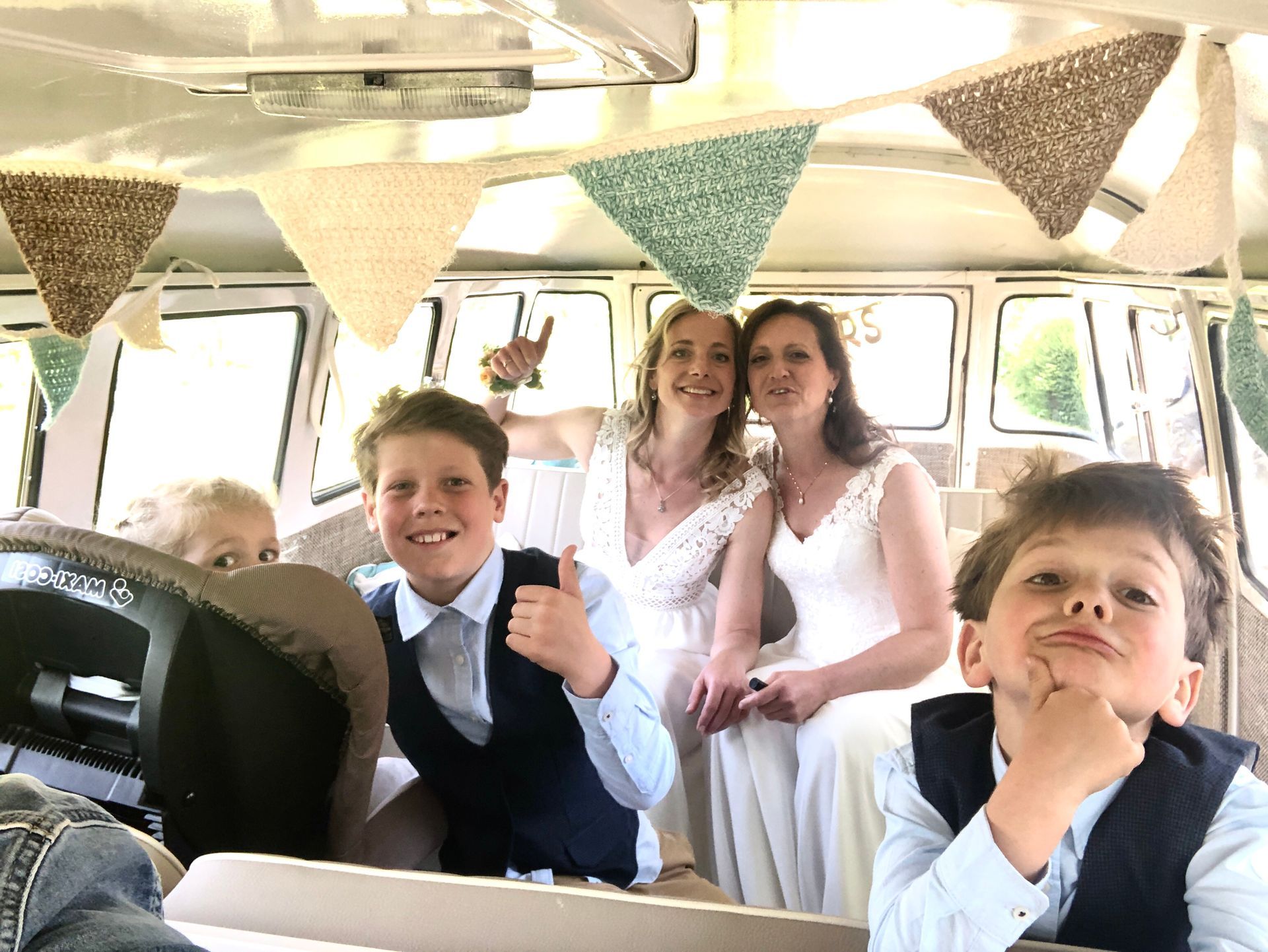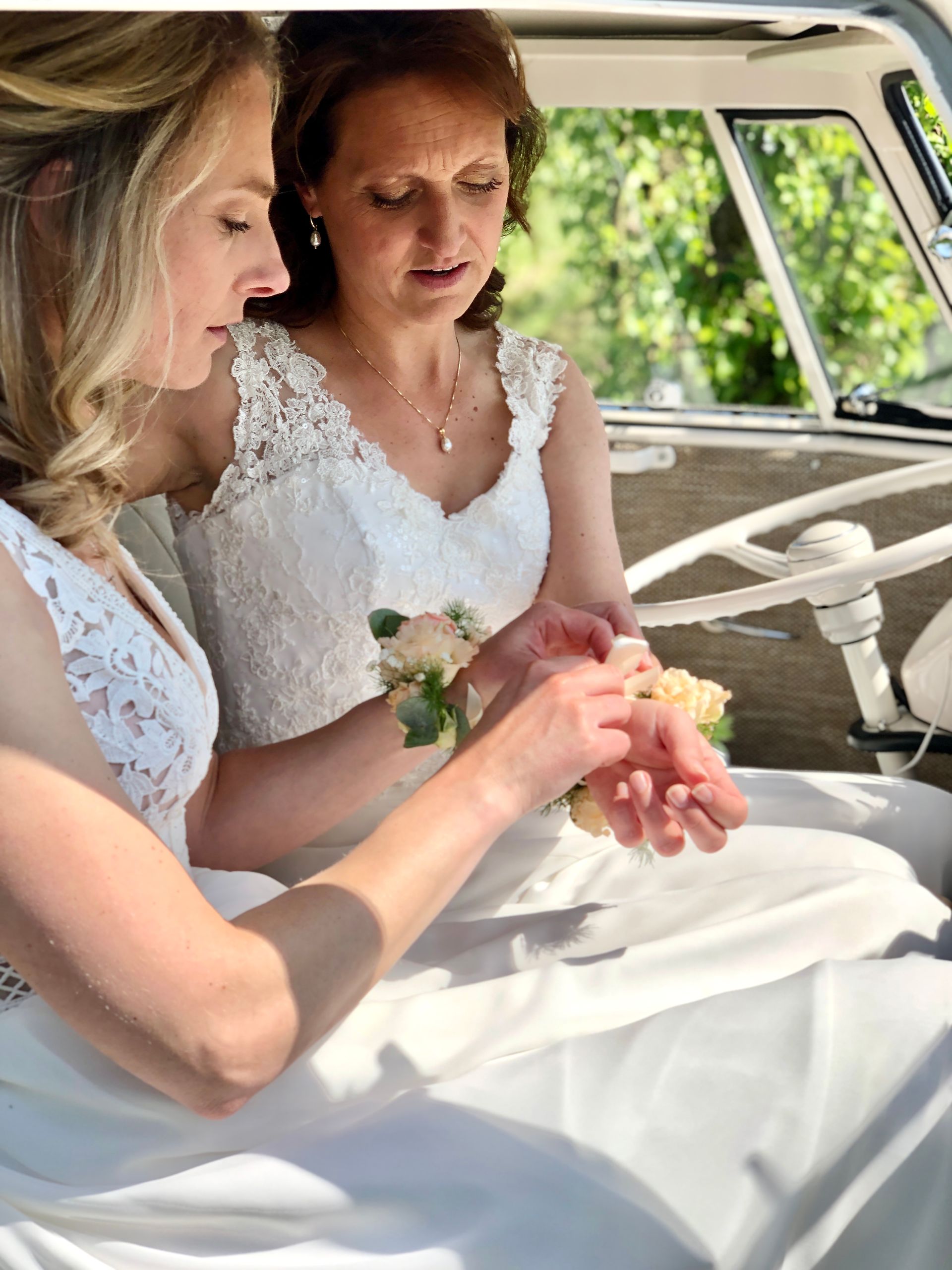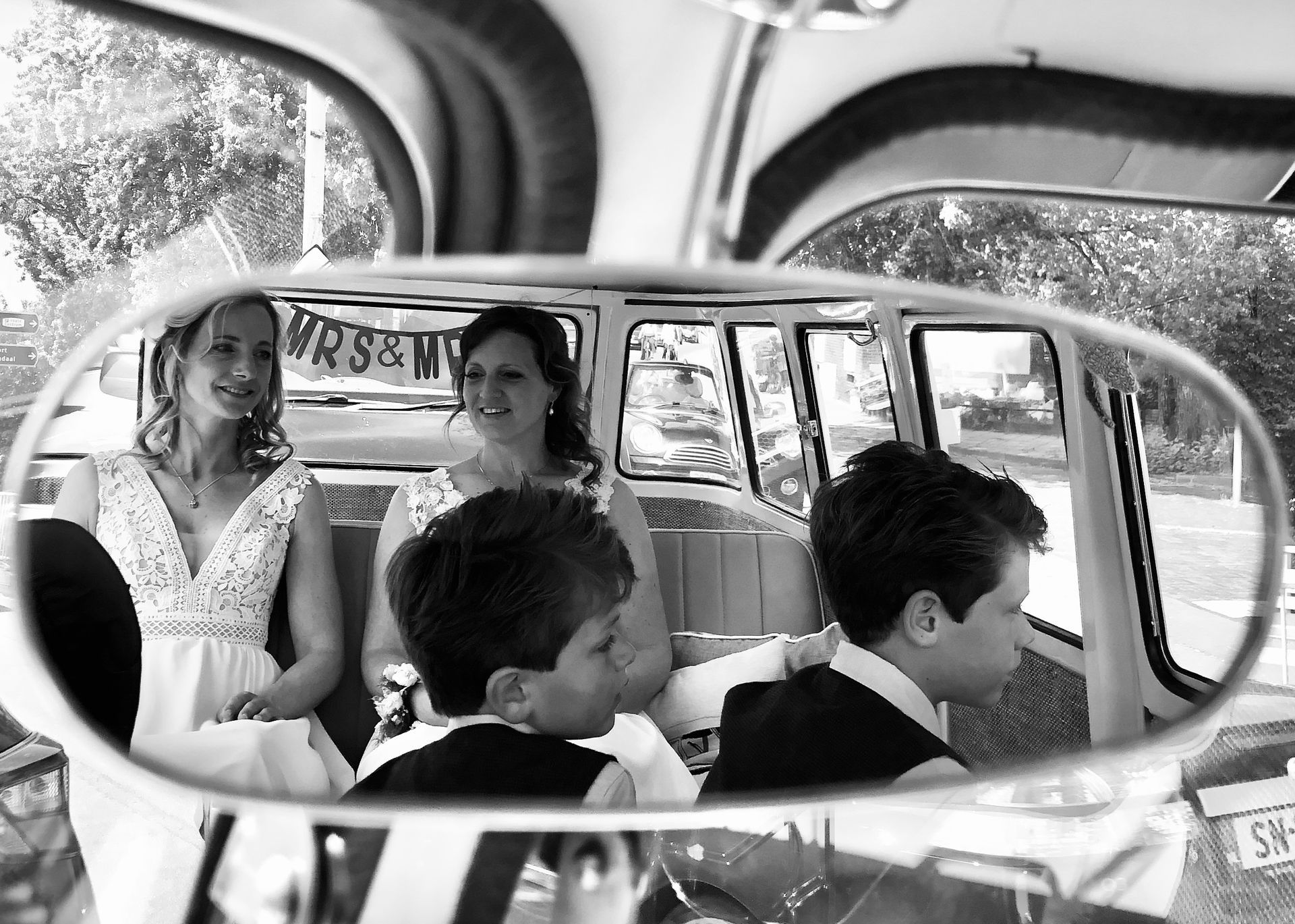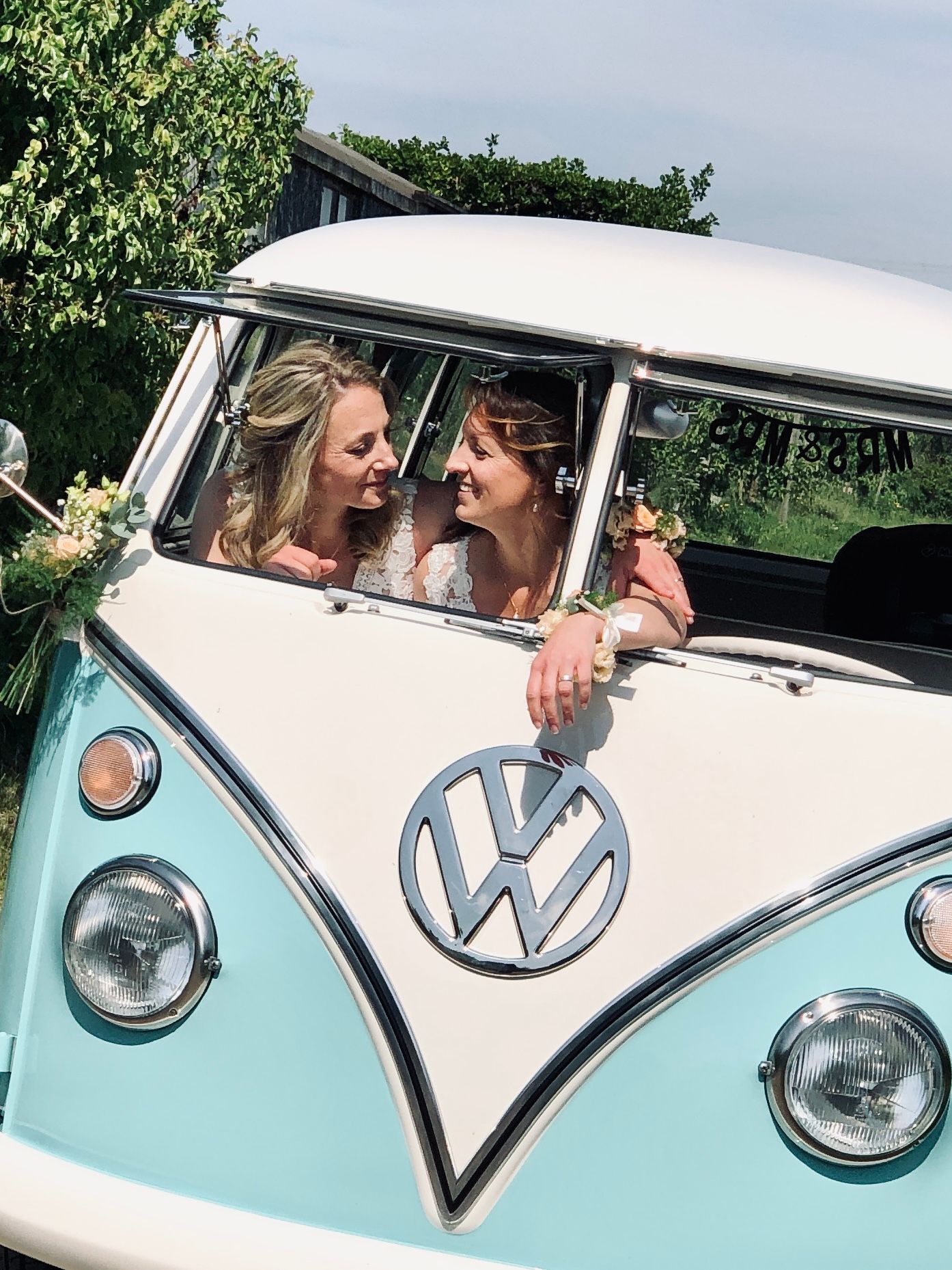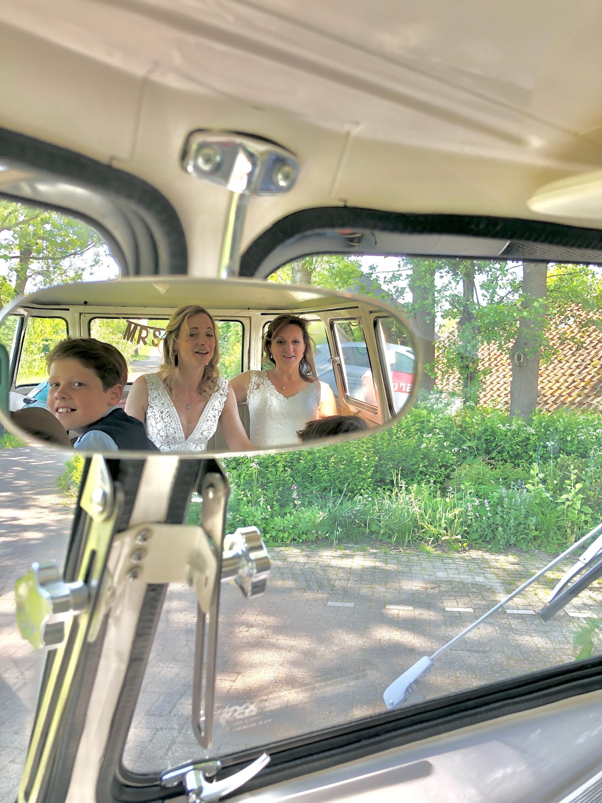 19 mei 2023: DE dag voor Olga en Marielle. Een prachtige warme zomerdag en mijn bus staat voor de deur van hun huis. Twee prachtige bruiden en hun kinderen komen stralend naar buiten. Ouders en vrienden stralen mee wanneer het bruidspaar in de bus stapt.