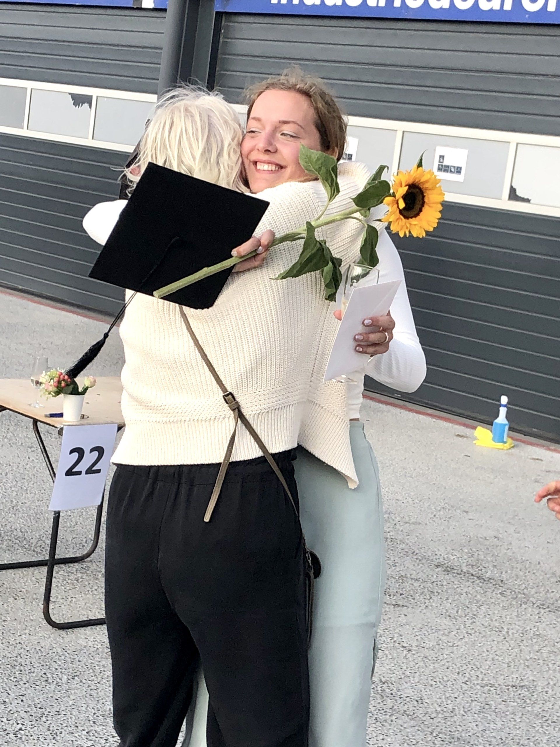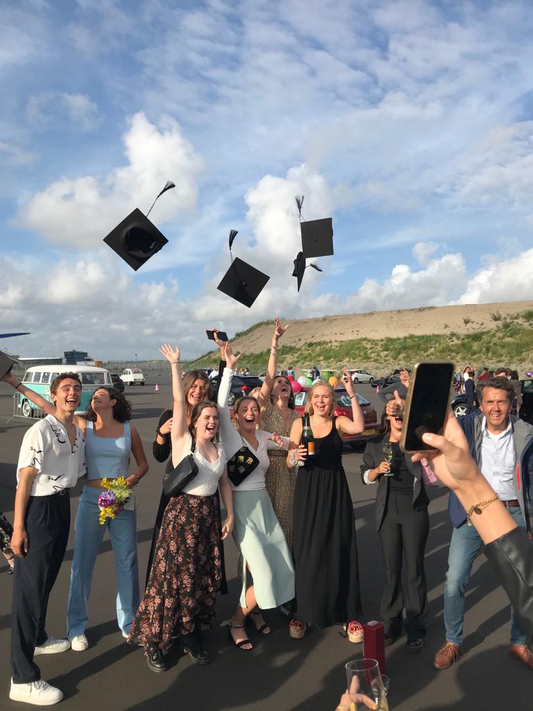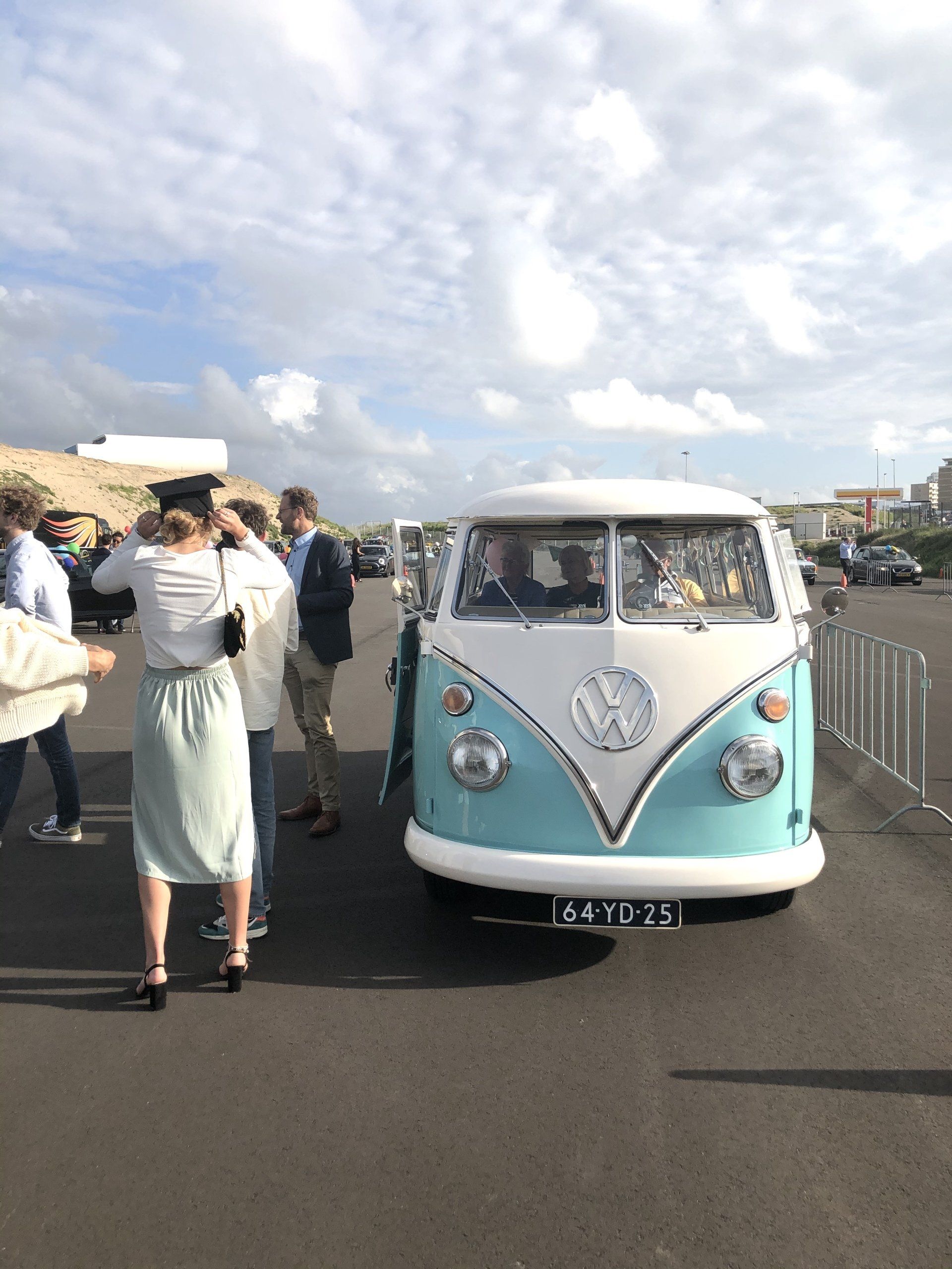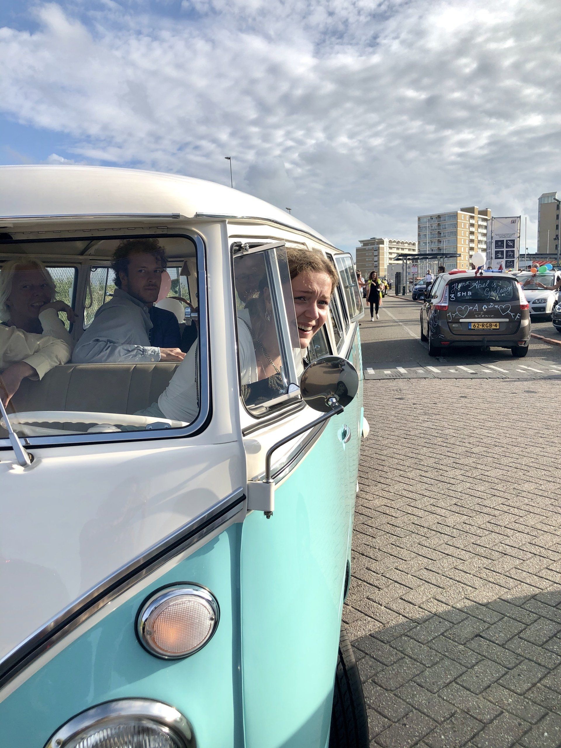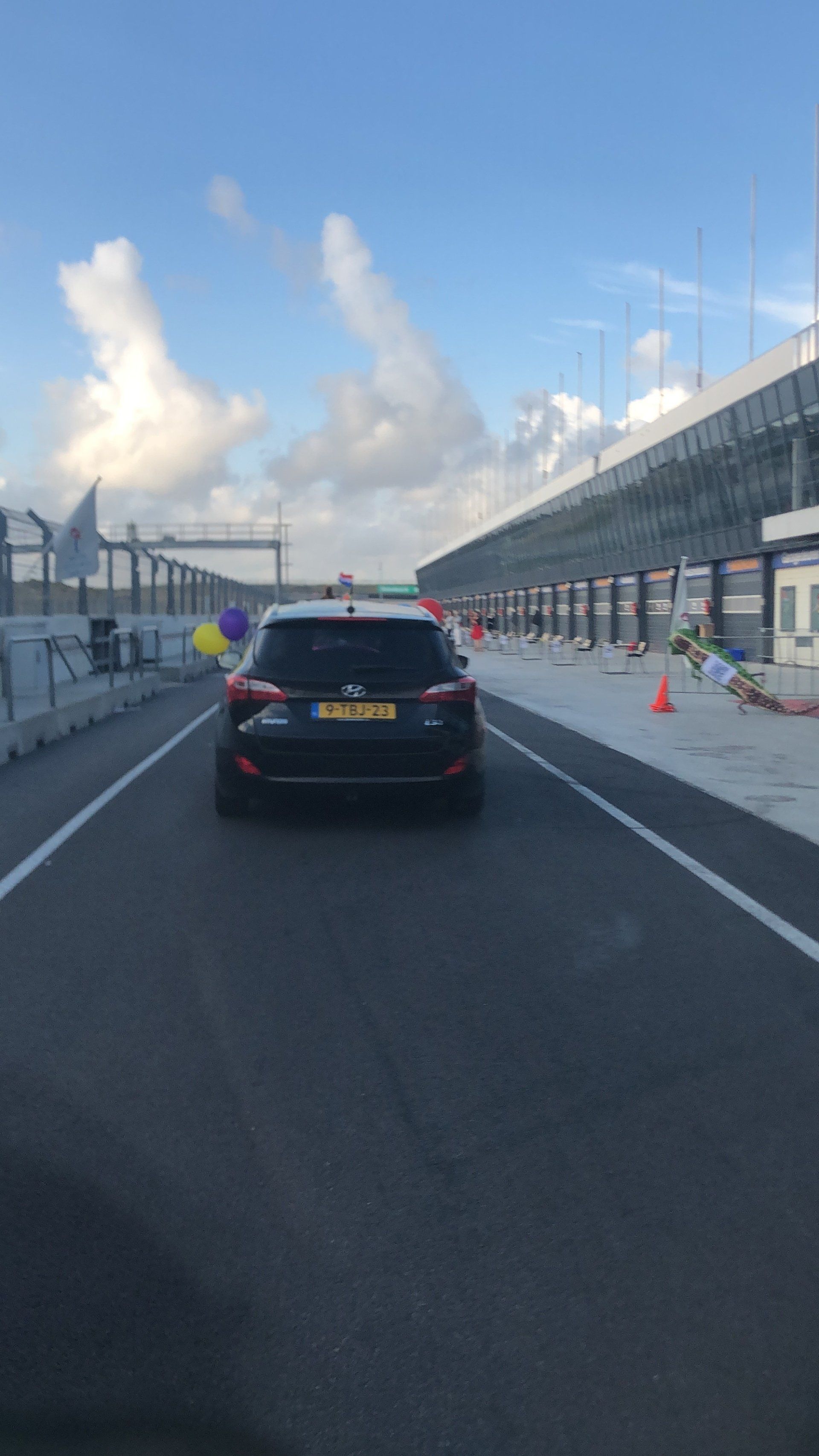 Het rondje was natuurlijk veel te kort en voor we het wisten waren we onderweg naar de uitgang. Zelfs dat stukje was een ervaring op zich. Zoveel verschillende en versierde auto's met allemaal blije en vrolijke mensen die er echt even (op gepaste wijze) een feestje van maakten! Bloemen op de auto, verschillende oldtimers, muziek, ballonnen, examenkandidaten... je kon het zo gek niet bedenken of het was er. Wat een geweldige ervaring; eentje die ik niet snel zal vergeten!