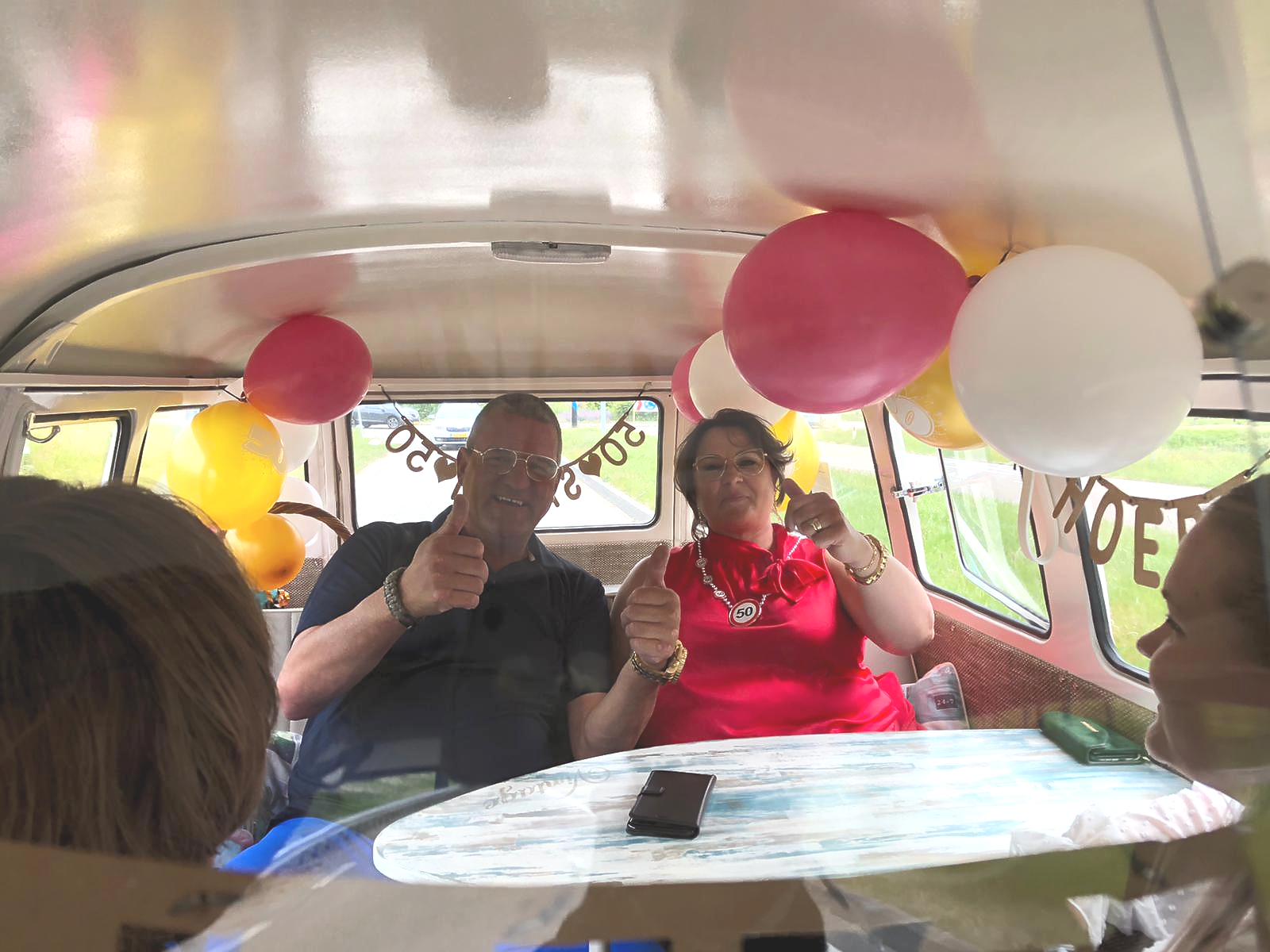 50 jaar... Niet zomaar een verjaardag om voorbij te laten gaan. Ook niet wanneer Corona in het land is. Met een aantal aanpassingen in de bus, is het toch gelukt om deze jonge dame in het zonnetje te zetten. En hoe groot is die verassing dan!