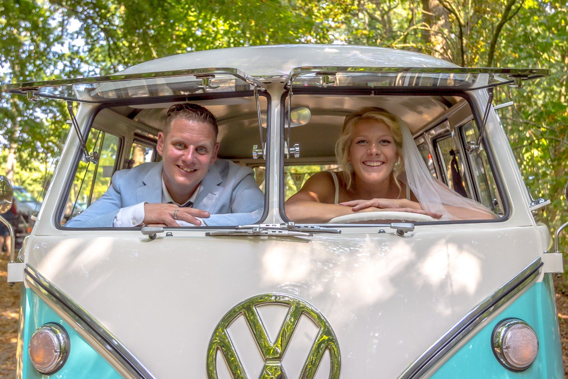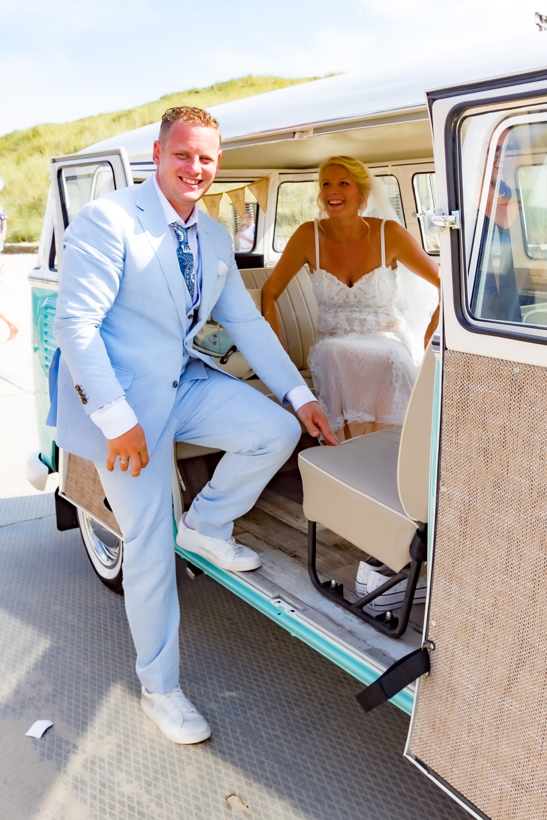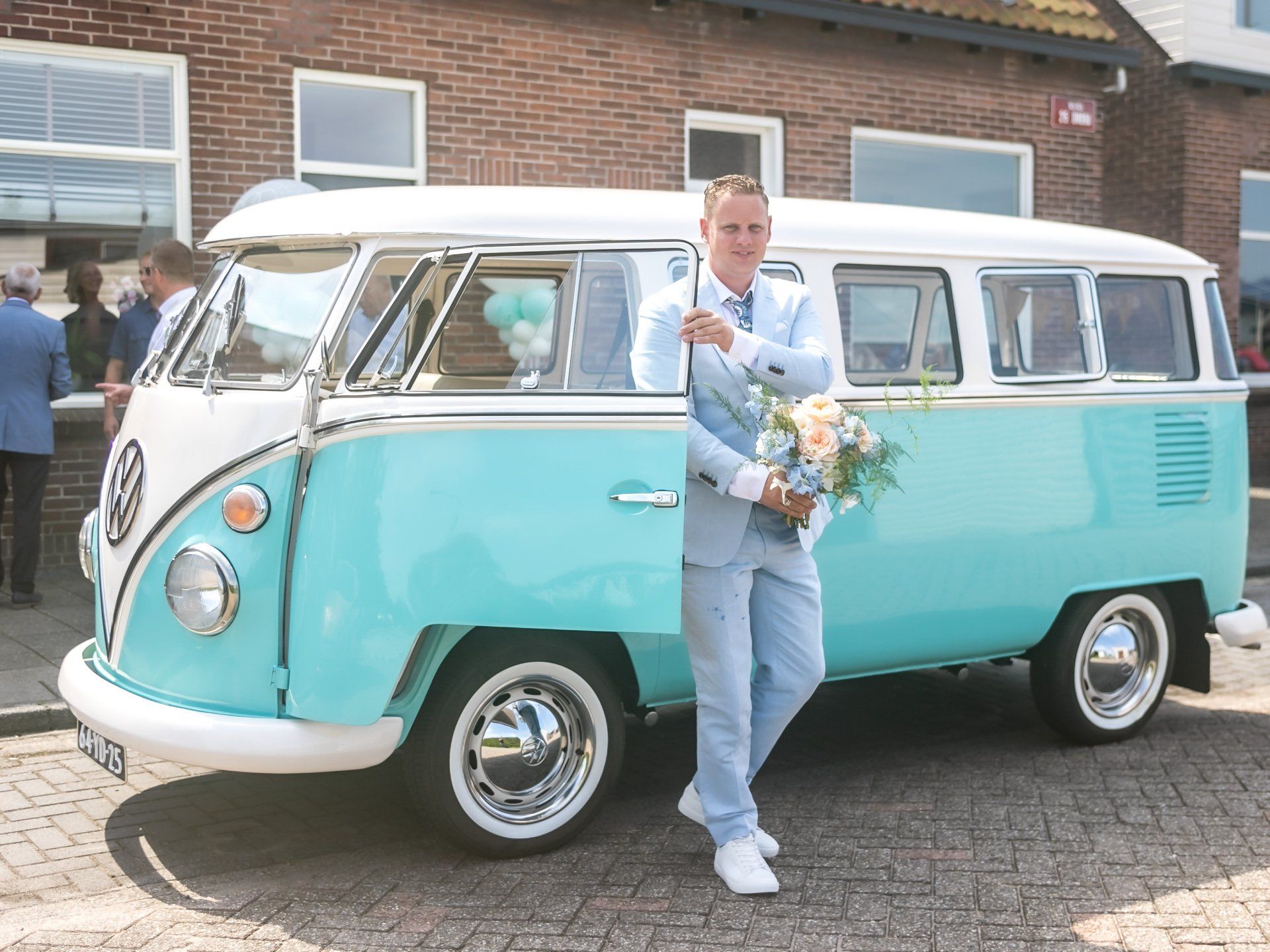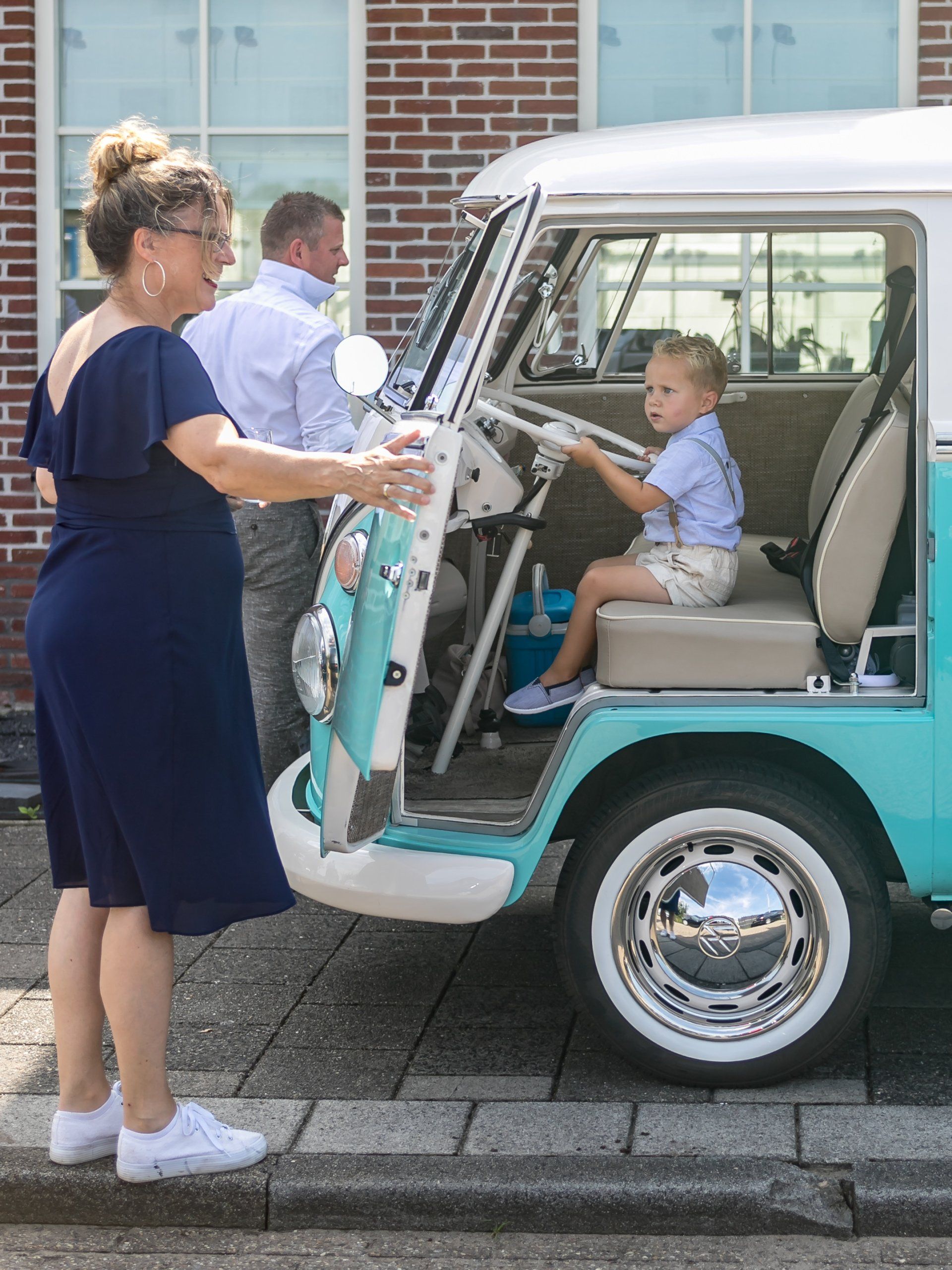 16 augustus 2020: met 34 graden op de temperatuurmeter, best een warme dag. Onderweg de raampjes van de bus open en heerlijk genietend onderweg richting Zaanstad. Bij de bruidegom aangekomen staan alle mannen buiten in de schaduw te genieten en te wachten tot het startsein. De bruid bevindt zich op 100 meter afstand en hoewel ik geen andere mensen laat rijden in mijn bus, is 100 meter natuurlijk niks en mocht de bruidegom even achter het stuur kruipen.