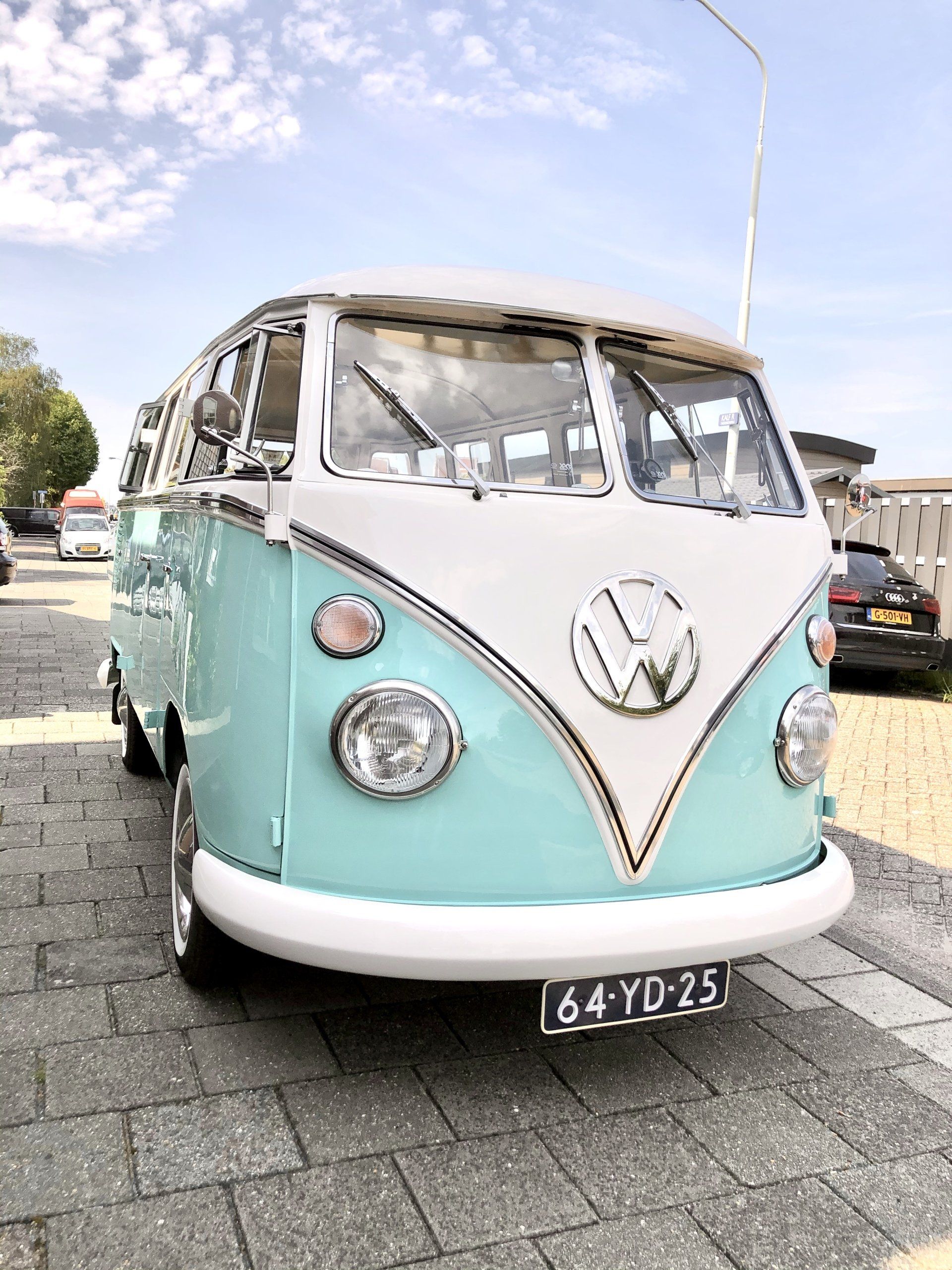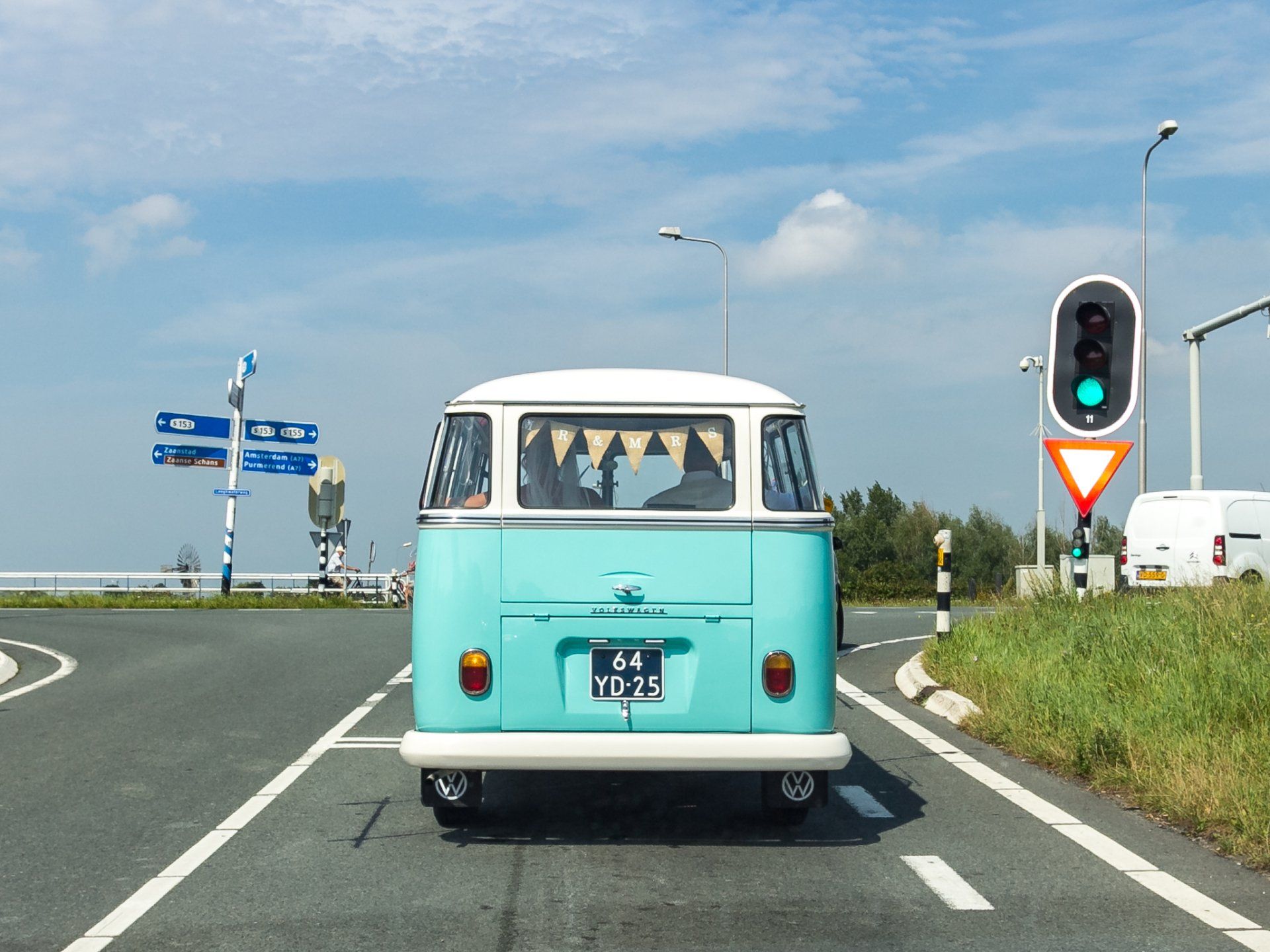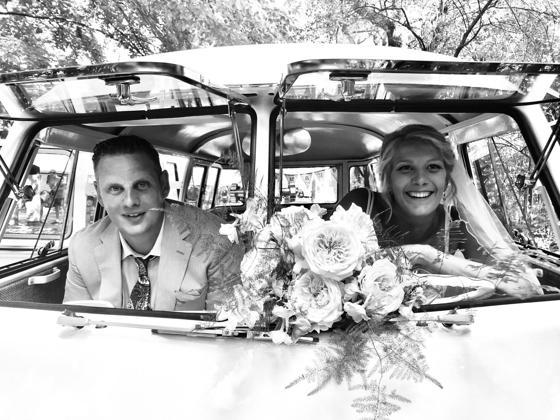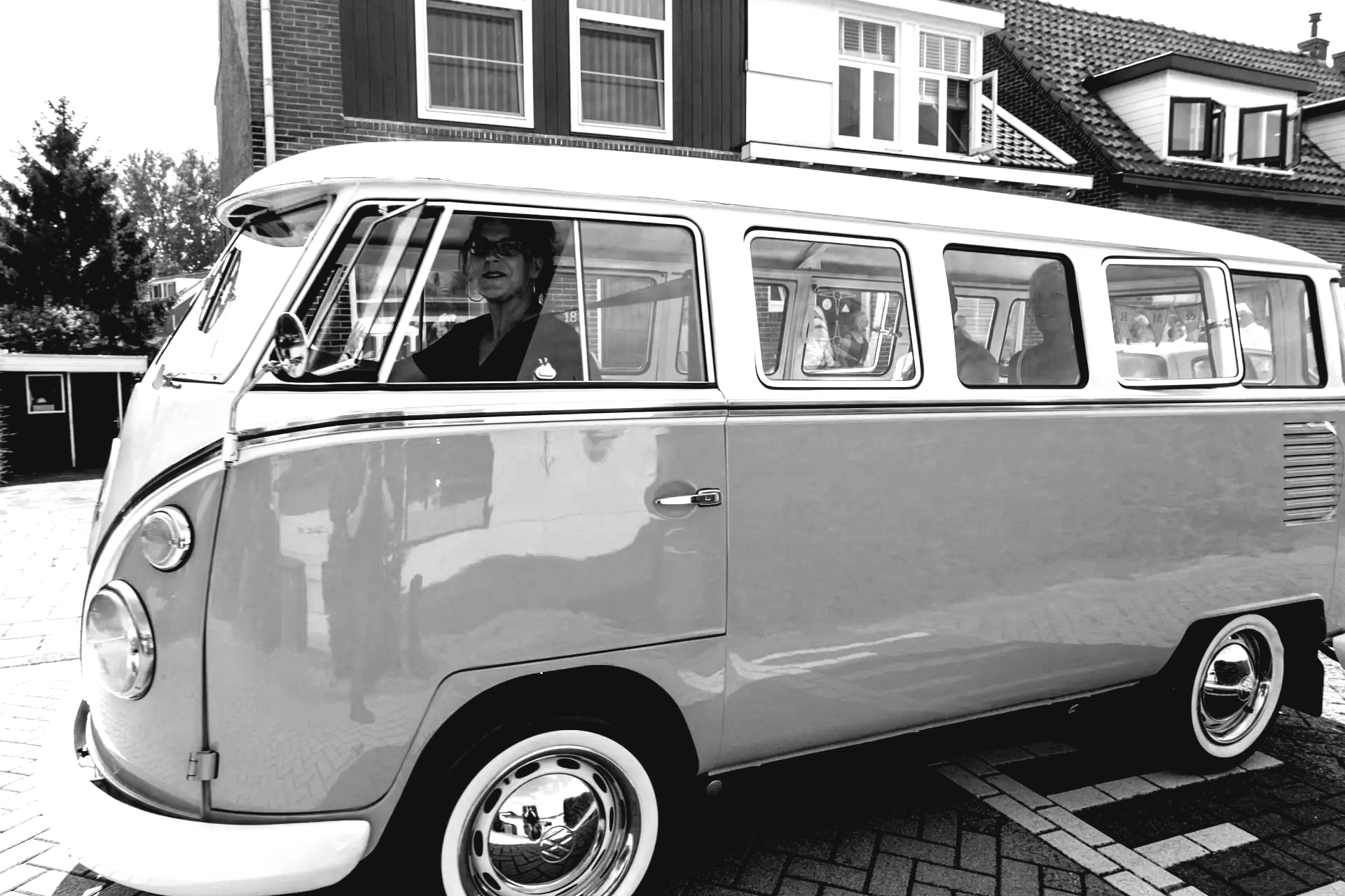 16 augustus 2020: met 34 graden op de temperatuurmeter, best een warme dag. Onderweg de raampjes van de bus open en heerlijk genietend onderweg richting Zaanstad. Bij de bruidegom aangekomen staan alle mannen buiten in de schaduw te genieten en te wachten tot het startsein. De bruid bevindt zich op 100 meter afstand en hoewel ik geen andere mensen laat rijden in mijn bus, is 100 meter natuurlijk niks en mocht de bruidegom even achter het stuur kruipen.